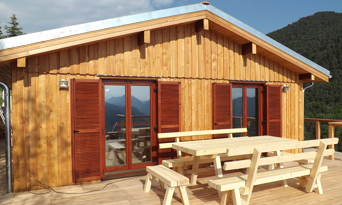 Die Blockbohlen sind vierseitig ausgehobelt und mit Nut und hohen, trapezförmigen feder versehen. Die Blockbohlenfräsung ist eine patentierte rechteckige rundrumfräsung mit Versatz der Fräsung zueinander in der Verbindung 8 fach- Kontaktflächen(system Schweitzer-Chalets). Dieses System wird auf Präzision Maschinen mit numerischen Steuerung (CNC) hergestellt, die eine perfekte Abdichtung zu Wasser und Wind garantieren. Die Balken sind aus massivem Holz oder mit den folgenden Abschnitten: 45 mm, 70 mm, 92 mm, 120 mm und 180 mm. Massivholz-Bauweise mit mehr als 180 mm müssen nicht mit zusätzlichen isolierenden Material gedämmt werden.